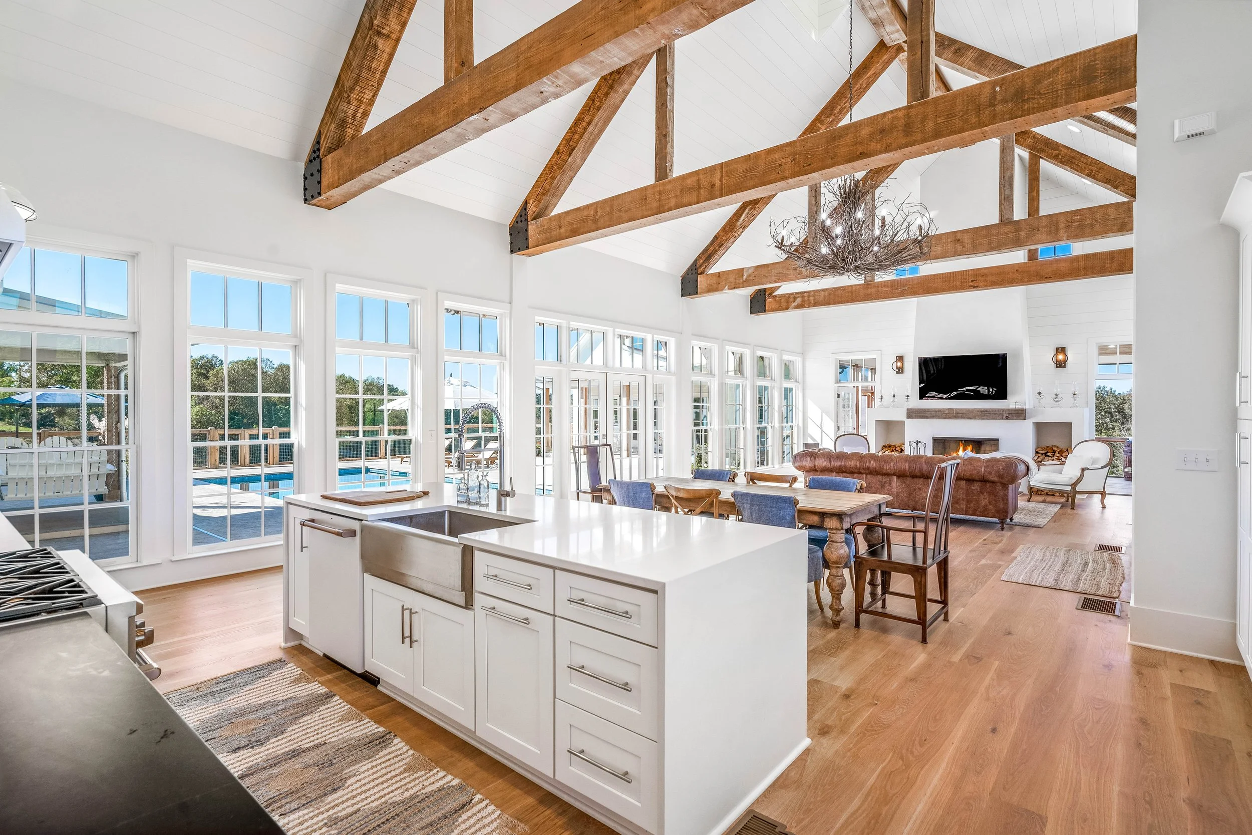 Perched on the crest of a hill overlooking lush pasture and organic garden, is this redesigned, luxurious modern barn. This home is brimming with unique and rustic charm including 24’ ceilings with exposed beams. Distressed beams, vaulted ceilings and a wall of windows inviting in the light, make this a magnificent retreat. The interior impresses with a designer kitchen and scullery making it a streamlined, beautiful area to entertain. The owner’s suite includes a spa like retreat featuring a wet room with claw foot tub. The gorgeous outdoor area with pool is perfect for hosting gatherings and leads to a beautiful guest cottage, giving friends and family their own private living space. Every attention to detail was take when designing this home and it shows in the completed project.